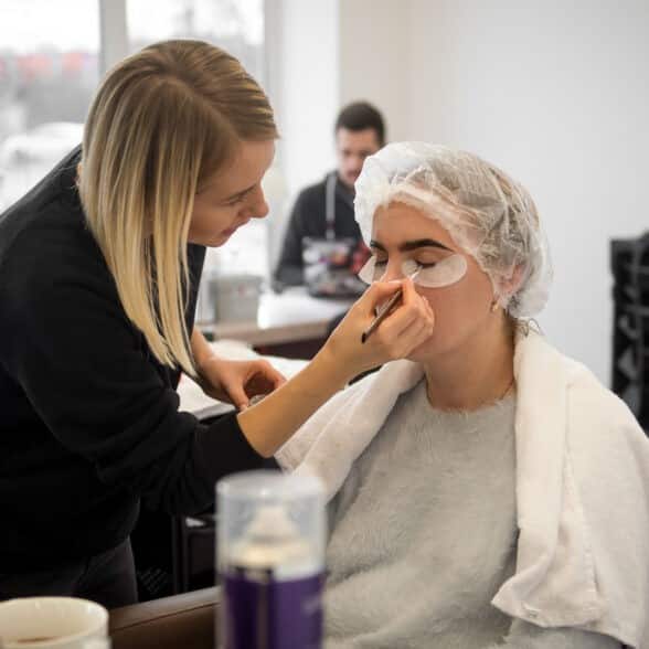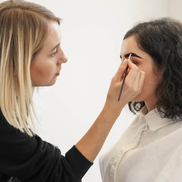 The process usually starts with eyebrow shaping. Excess hairs are removed, and defined lines are drawn with a pencil. A fatty cream is then applied to the upper eyelids and brow bones to prevent the henna from spreading. Next, the master prepares the henna mixture and applies it to the eyebrows. The eyebrows are covered with a film and left for approximately 40 to 60 minutes.